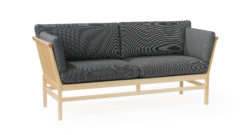 Soffan Astrid som är mycket skön att sitta i kombinerar vackert träarbete med tjocka plymåer, den för tankarna till sommarens skärgård och beroende på tygval skapar du din egen unika soffa.