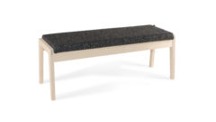 En enkelt utformad sittbänk, men med fint arbetade trädetaljer. Kan användas som solitär eller flera tillsammans t.ex. i väntrummet, korridoren, eller sovrummet.
